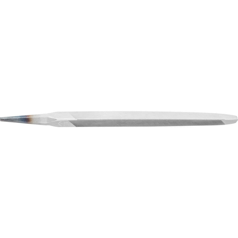 Trekantsfil, avsmalnande form, med tånge. Huggning på tre sidor, runda, huggna kanter. Form D enligt DIN 7262. För skärpning av sågklingor.