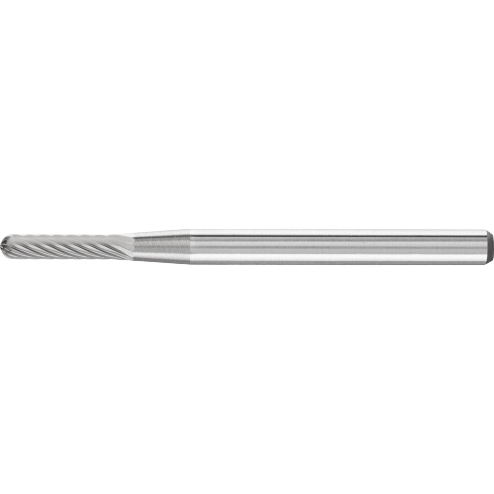 Cylindrisk fil med rundad topp enligt DIN 8032 med tandning enligt DIN 8033. Kombination av cylindrisk och kulformig geometrisk form. GL = totallängd (homogen hårdmetall) SL = skaftlängd (långt stålskaft)
