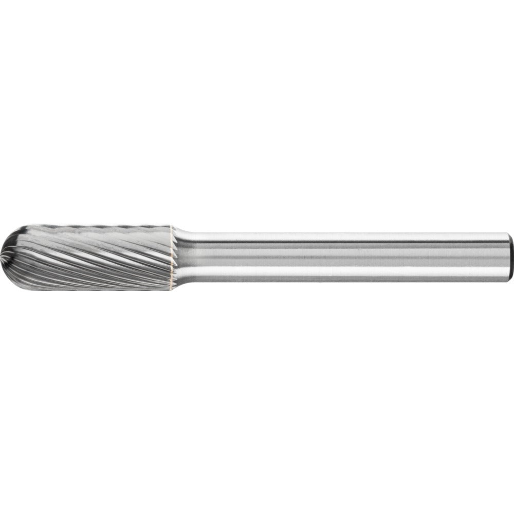 Cylindrisk fil med rundad topp enligt DIN 8032 med tandning enligt DIN 8033. Kombination av cylindrisk och kulformig geometrisk form. GL = totallängd (homogen hårdmetall) SL = skaftlängd (långt stålskaft)